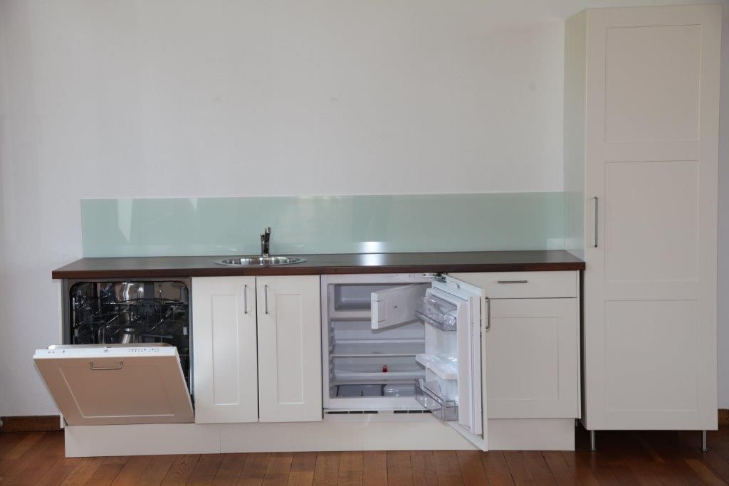Küchenlinie im Büro mit Geschirrspüler und Kühlschrank